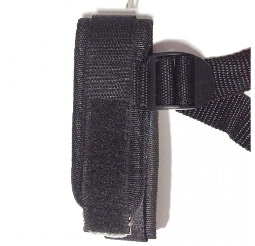 М'який з'єднувач для потдежки шиї, через який протягують ремінь, що з'єднує підніжжя, із вшитими півкільцями для карабінів наручників.