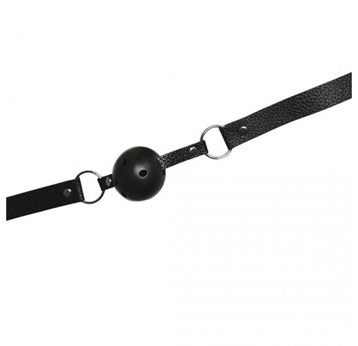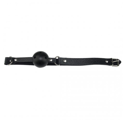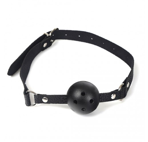 БДСМ Кляп: пластикова кулька з отворами на шкіряному ремінці з регульованою застібкою.