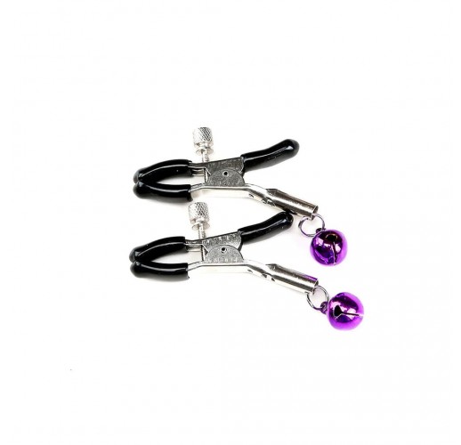10. Металеві затискачі для сосків з гумовими наконечниками, шурупом-регулятором і маленьким дзвіночком (6 см.).