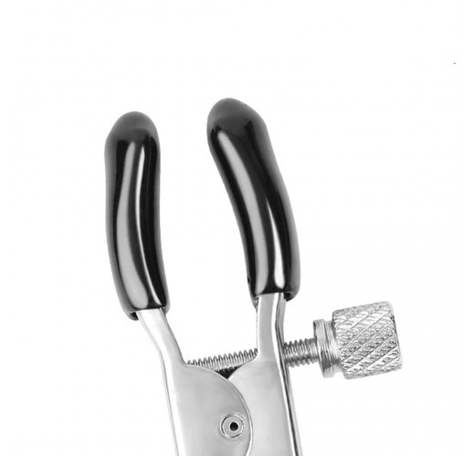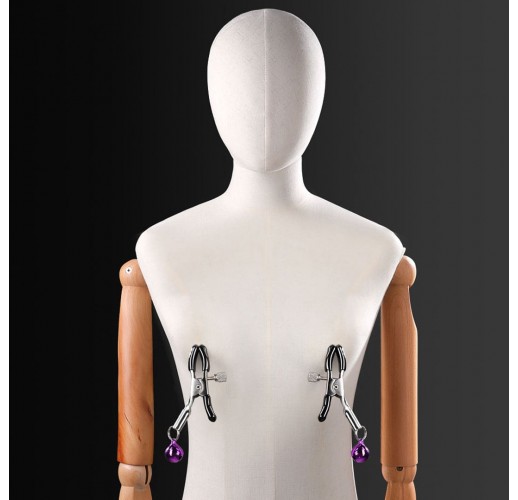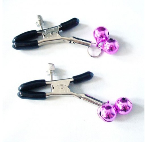 БДСМ Металеві затискачі для сосків мають гумові наконечники і шурупний регулятор з дзвіночками