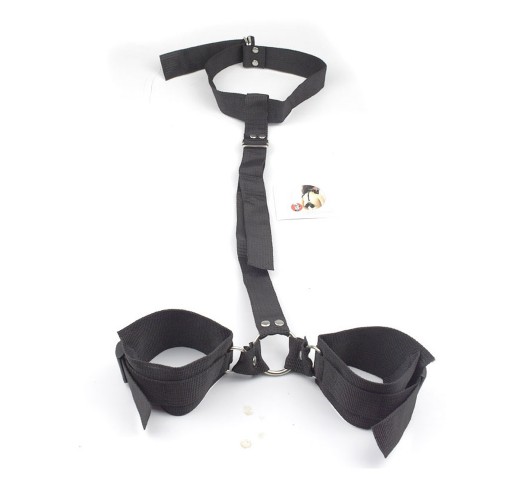 Бандажний ремінь, що складається з нашийника і фіксатора для рук, з'єднаних ременем і кільцями для виставлення розміру.