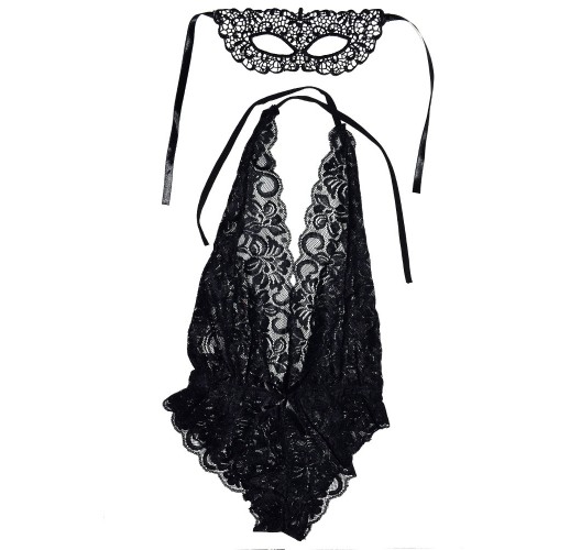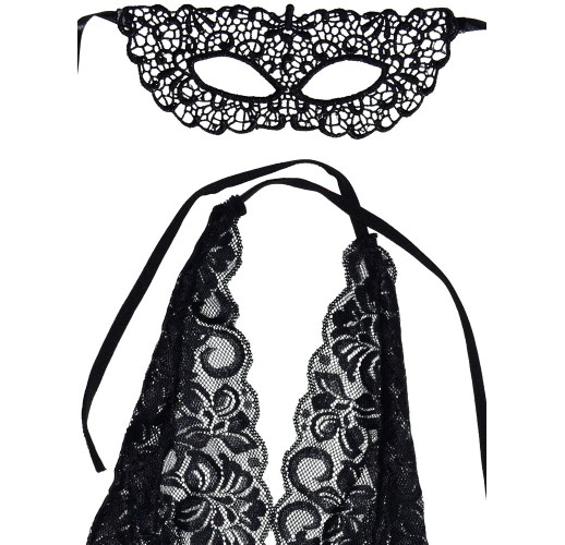 Чорний еротичний ігровий костюм "Незнайомка" (костюм для рольових ігор): боді та мереживна маска.