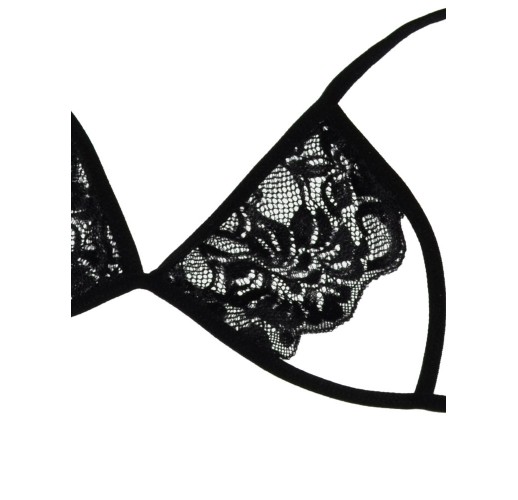 Бюстгальтер з відкритими чашками, внутрішня сторона яких з мережива, зав'язується ззаду.