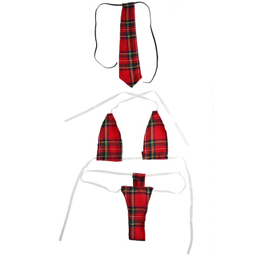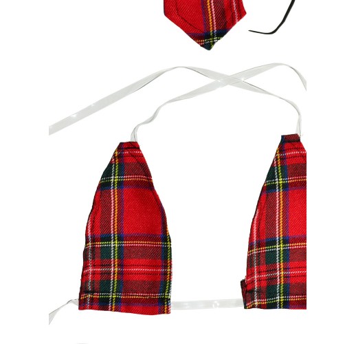 Еротичний ігровий костюм "Школярка" (костюм для рольових ігор): бюстгальтер, труси, краватка з малюнком у клітинку.