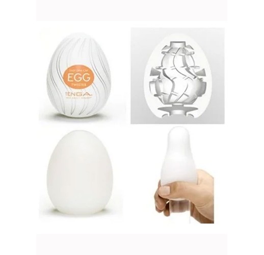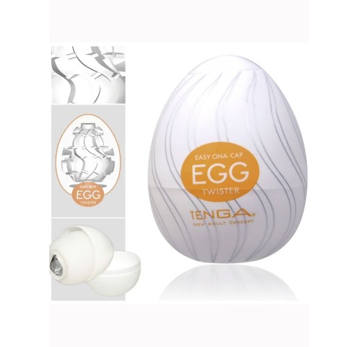 Нереалістичний мастурбатор для чоловіків - яйце Tenga EGG зі структурним внутрішнім рельєфом Twister зі еластичного матеріалу еластомеру в пластиковій шкаралупі.