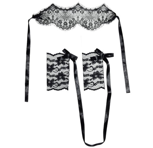 Мереживні наручники з атласними бантиками і з'єднані стрічкою.