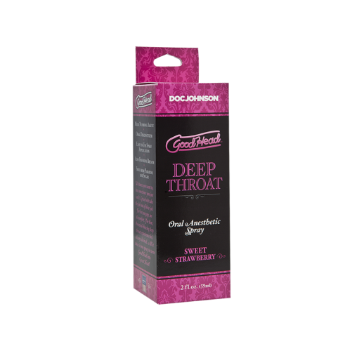 Мало який чоловік зможе встояти перед чудовим оральним сексом. Краще за це може бути тільки чудовий глибокий мінет з використанням спеціального спрею. Саме такий спрей дає змогу звести нанівець блювотний рефлекс. Таким чином, можна буде цілком заковтнути навіть найбільший пеніс. Зупиніть свій вибір на спреї для орального сексу Doc Johnson GoodHead Deep Throat Spray - Sweet Strawberry. Він дуже приємний на смак і сприяє відмінному зниженню чутливості. Спрей для глибокого орального сексу має низку переваг: зниження чутливості горла (десенсибілізація); мінімізація блювотного рефлексу; м'який ефект, без повної втрати чутливості; ефект освіжувача для рота; зручна насадка; чудовий полуничний смак. Саме активний елемент - бензокаїн (у складі спрею його 5%) дає змогу знизити чутливість. Бензокаїн повністю безпечний для здоров'я, має анестезуючі властивості. Це сприяє тимчасовому онімінню слизових. Спрей виготовлений у США, при цьому дотримано всіх норм безпеки. У складі також входять такі компоненти, крім бензокаїну: гліцерин, гідрогенізована рицинова олія, ароматизатор, сукралоза, вода та інше.