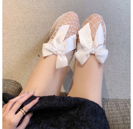Білі панчохи в сітку з пришитим батнтом по центру, укріплений носок.