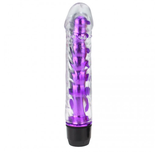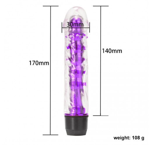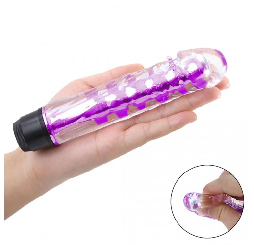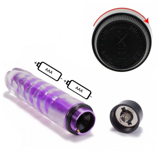 Гелевий вібратор анатомічної форми з регульованою інтенсивністю для вагінальної мастурбації, з'ємна гелева налагодка з пухирцями під голівкою (зручно мити, добре тягнеться - можна використовувати як насадку на інші іграшки), нижня частина ручки поворотна, блискучий внутрішній пластиковий стрижень із випуклостями по всій довжині (можливо використовувати для більш потужної зовнішньої стимуляції: сосків, клітора, мошонки).