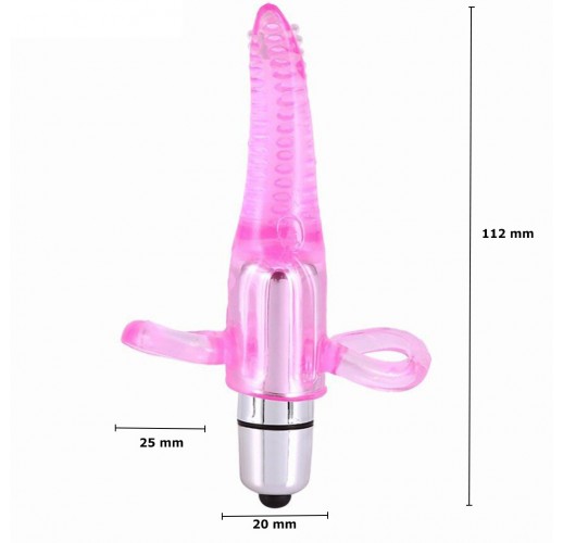Міні-вібратор рожевого кольору має форму язика, що використовується для кліторальної мастурбації та стимуляції інших ерогенних зон, таких як соски, анус.